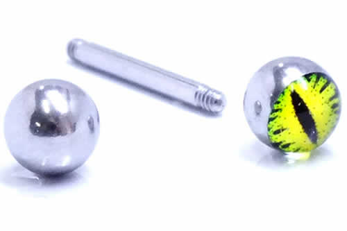 蛇の目をモチーフにした不気味なボールをセットしたバーベル型のボディピアス。